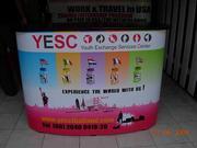 อุปกรณ์จัดบูธสำเร็จรูป Roll up X-Banner ชั้นวางโบว์ชัวร์ งานพิมพ์ In door Out door ราคาถูก
