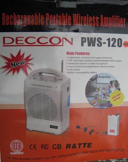 เครื่องขยายเสียงกระเป๋าหิ้ว ตู้ขยายเสียงพกพา พร้อมไมค์ลอยแบบครอบศีรษะ DECCON PWS-120