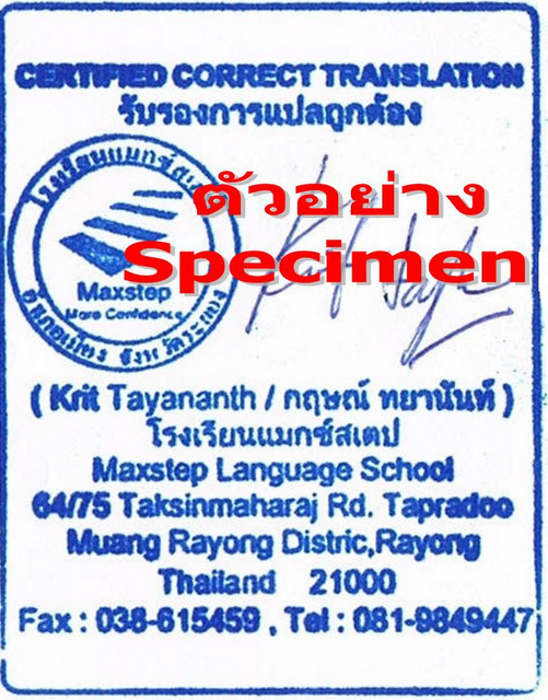 เนื่องด้วยศูนย์ภาษาแมกซ์สเตป จังหวัดระยอง โดยการรับรองจากกระทรวงศึกษาธิการ ใบอนุญาตเลขที่ 1/2554