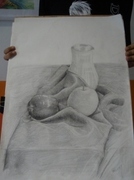 เริ่มจากเขียนหุ่นนิ่งและสิ่งของง่ายๆใกล้ๆ ตัว และพื้นฐานหลักการต่างๆ ที่ควรเรียนรู้ การร่างภาพ การจัดองค์ประกอบของภาพ แสงทศทางของแสง การวางแผนการลงแสงเงาและวิธีการแรเงาที่ถูกต้อง การลงเงากับระยะต่างๆ เพื่อให้เกิดมิติของภาพแบบสามมิติ และเทคนิคต่างๆ เช่นการลงเงาแบบฝนถู การลงแสงเงาแบบเส้น การควบคุมน้ำหนักของภาพ การหาจุดสนใจของภาพ