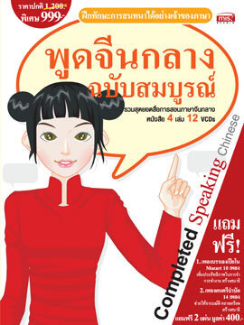สื่อการสอนชุด "พูดจีนกลางฉบับสมบูรณ์" เหมาะสำหรับผู้ที่มีพื้นฐานภาษาจีนมาบ้างหรือไม่มีเลย เนื้อหาเริ่มตั้งแต่การเรียนรู้คำศัพท์ และสำนวนที่นิยมใช้ในชีวิตประจำวัน เน้นทักษะการฟังและตัวอย่างบทสนทนา กว่า 100 สถานการณ์ ให้คุณฝึกพูดไปพร้อมๆ กันกับอาจารย์เจ้าของภาษา ซึ่งง่ายต่อการทำความเข้าใจ สามารถนำไปสนทนากับชาวจีนได้อย่างรวดเร็ว ที่สำคัญยังเป็นพื้นฐานที่ดีในการเรียนภาษาจีนกลางขั้นสูงต่อไป