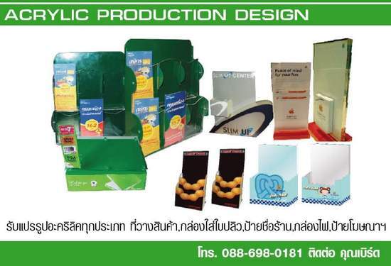 ACRYLIC PRODUCTION DESIGN รับแปรรูปอะคริลิกทุกประเภท ที่วางสินค้า กล่องใส่ใบปลิว ชั้นโชว์สินค้า ป้ายชื่อร้าน กล่องไฟ ป้ายโฆษณา ฯลฯ