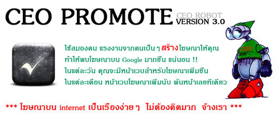 อยากขายของดี แนะนำบริการโฆษณาสินค้าของคุณไปให้นับแสนเวบ CEO PROMOTE นวัตกรรมใหม่ บริการโปรโมทสินค้า โปรโมทเว็บ ทำให้โฆษณาติดGoogle หน้าแรก