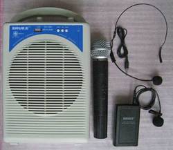 เครื่องขยายเสียงกระเป๋าหิ้ว มาพร้อมไมค์ครบเซ็ต ไมค์ครอบศีรษะ ไมค์หนีบเสื้อ และ ไมค์ลอยมือถือ ปรับใช้ได้ตามความต้องการ ลำโพงพกพารุ่นนี้พิเศษตรงที่สามารถใช้ไมค์ 2 ตัวพูดพร้อมกันได้ และมีช่องเสียบ USB เล่นMP3 ได้ เหมาะสำหรับใช้ สอนหนังสือ สอนโยคะ ประชุมนอกสถานที่ เปิดท้ายขายของ ฯลฯ มีแบตเตอร์รี่สำรองในตัว ใช้งานง่าย พกพาสะดวก