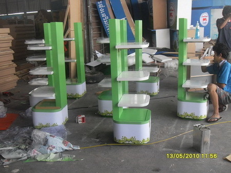 ผลิตงานโครงสร้างบูธตามแบบลูกค้า งานเคาน์เตอร์ งาน Shelf , Backdrop, Stage งานเวที งานแกะสลักโฟม