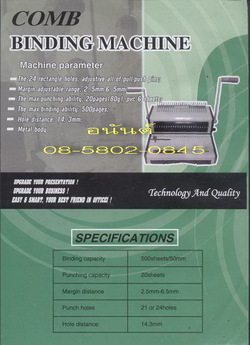 เครื่องเจาะเข้าเล่มสันห่วงกระดูกงูพลาสติค สามารถเจาะรูได้ถึง 24 รู สามารถเว้นช่องการเจาะได้ สามารถเจาะและนำไปเข้าเล่มได้ในเครื่องเดียวกัน และยังเจาะแผ่น PVC ใสได้ สามารถนำเอกสารงานมาเปลี่ยนเพิ่มเติมหรือถอดออกได้