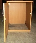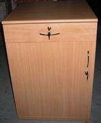 ตู้ครอบเซฟตู้ไม้ มีลิ้นชักบนล็อคกุญแจ และด้านล่างประตูบานเปิดทึบล็อคกุญแจ (ไม่มีพื้น)