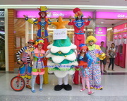 ตัวตลกโบโซ่บิดแจกลูกโป่ง ตัวตลกขายาว จั้กกลิ้ง จักรยานล้อเดียว ตัวการ์ตูนมาสคอท