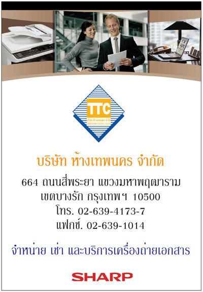 จำหน่าย เช่า และบริการเครื่องถ่ายเอกสาร SHARP สนใจติดต่อสอบถามรายละเอียดเพิ่มเติมได้ที่ ห้างเทพนคร