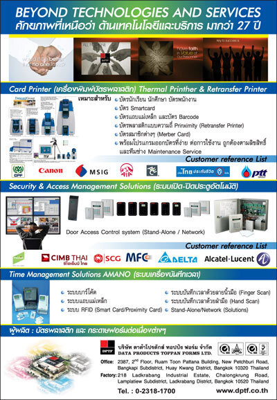 ตัวแทนจำหน่ายเครื่องบันทึกเวลา , ระบบเปิด-ปิด ประตูอัตโนมัติ และระบบออกบัตรประจำตัว สนใจติดต่อสอบถามรายละเอียดเพิ่มเติมได้ที่ บริษัท ดาต้าโปรดักส์ ทอปปัง ฟอร์ม จำกัด