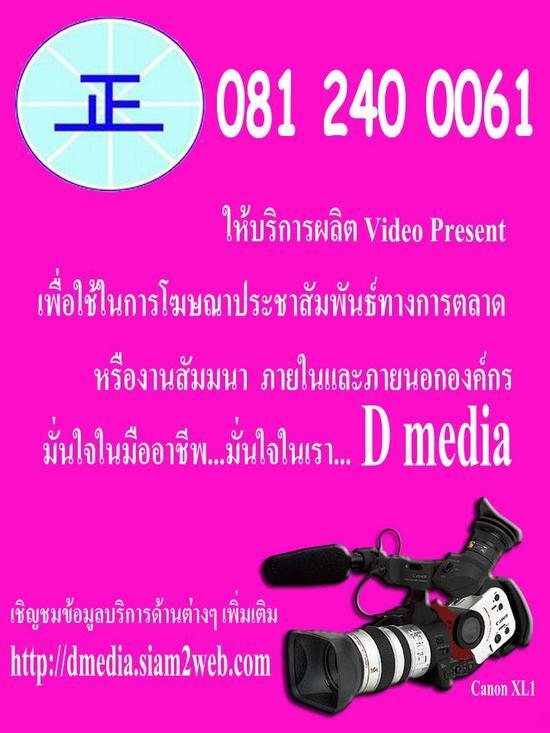 โปรโมชั่นส์พิเศษ...รับฟรีทันที บริการพิมพ์ โบชัวร์ขนาด A5 เมื่อใช้บริการผลิตวิดีโอพรีเช้นท์ เพื่อใช้ในการโฆษณาและการประชาสัมพันธ์...ดูรายละเอียดเพิ่มเติม http://dmedia.siam2web.com