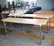 โรงงานผลิต โต๊ะพับหน้าโต๊ะไม้เมลามีน (ลายไม้ขวาง) ขาเหล็กชุบโครเมี่ยม (หน้าโต๊ะสั่งสีได้ สีเชอร์รี่ สีบีช สีขาว สีดำ สีเทาควันบุหรี่ สีเมเปิ้ล ) ขนาด กว้าง 120/150/180 ลึก 45/60/75 สูง 75 ซม. ยอดสั่งซื้อ 4,000 บาท ส่งฟรี กทม (อยู่ถนน 345)