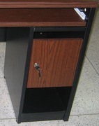 มีที่วาง CPU (กุญแจล็อคบานเปิด) มีคีย์บอร์ด หน้าโต๊ะเจาะช่องร้อยสายไฟ