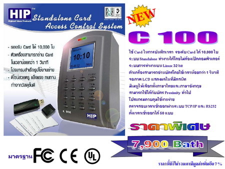 เครื่องทาบบัตร C100 HIP Proximity Card ระบบฺ Standaloneเพื่อบันทึกเวลาเข้าออกงานของพนักงานในราคาสุดพิเศษ