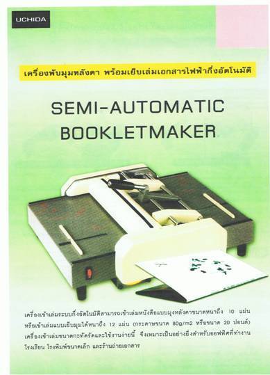 รายละเอียด: เครื่องพับมุงหลังคา พร้อมเย็บเล่มเอกสารไฟฟ้ากึ่งอัตโนมัติ UCHIDA SEMI-AUTOMATIC BOOKLETMAKER