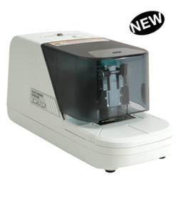 This Electronic Flat Clinch Stapler features manual and auto stapling