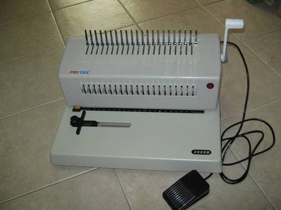 เป็นเครื่องเจาะเอกสารแบบไฟฟ้า และเข้าเล่มเอกสารโดยใช้คันโยก เข้าเล่มเอกสารโดยใช้สันห่วงพลาสติกขนาดต่างๆตั้งแต่ 6 มม. ถึง 50 มม. สามารถเจาะเอกสารได้ 21 รู เจาะได้ 2 แบบทั้งแบบกดปุ่มสวิทซ์ และสวิทซ์แบบเท้าเหยียบ เข้าเล่มเอกสารได้กว้าง 12 นิ้ว (ขนาด A4) สามารถง้างสันห่วงในการเข้าเล่มขนาดหนาบางได้ตามต้องการ มีปุ่มปรับระยะห่างรูเจาะจากขอบกระดาษได้ มีปุ่มยกเว้นใบมีดการเจาะเอกสารได้ สำหรับปิดช่องยกเว้นการเจาะได้ทุกเข็มเจาะ