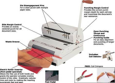 คุณลักษณะของเครื่องเจาะกระดาษและเข้าเล่มสันเกลียวไฟฟ้า COIL MAC ECI