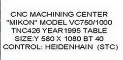ทางโรงงานเหลือ CNC MACHINE CENTER : MIKON VC750/1000 1 เครื่อง