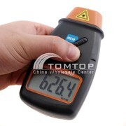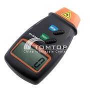 Large LCD displaying Wide measuring range & high resolution. Digital display gives exact RPM with no guessing or errors. The last value/max. value/min. value will be automatically stored in memory and can e displayed by turn anytime. The use of durable, long-lasting components, including a strong, light weight ABS-plastic housing assures maintenance free performance for many years. The housing has been carefully shaped to fit comfortable in either hand. Specifications: Display: 5 digits, 18mm (0.7") LCD (Liquid Crystal Display), with function annunciation. Teat Range: 2.5 to 99,999 RPM (r/min). Resolution: 0.1 RPM (2.5 to 9,999 RPM ). 1RPM (over 1,000 RPM). Accuracy: ±(0.05%+1 digit). Sampling Time: 0.8 sec.(over 60 RPM). Test Range Select: Automatic. Menory: Last value, Max. Value, Min. Value. Detecting Distance: 50 to 200mm/2 to 10 inch (LED), 50 to 500mm/2 to 20 inch (Laser) Time Base: Quartz crystal. Circuit: Exclusice one-chip of microcomputer LSI circuit. Power supply: one 6F22 9V battery Power Consumption: Approx. 35mA (LED) Approx.30mA(Laser) Operation Temp: 0 to 50°C (32 to 122°F) Color: gray with orange Dimension: 131*70*29mm Net weight: 129g (including battery) Package include 1* Carrying case 3* 20cm Reflecting tape marks 1* Operation manual 1* 6F22 9V Battery Package dimension: 146*96*52mm Package weight: 215g
