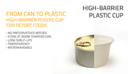 - ถ้วยพลาสติก สำหรับ รีทอร์ท (High-barrier plastic, Retortable plastic : PP/EVOH/PP)