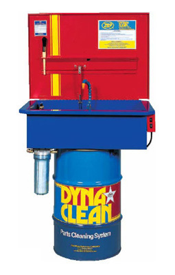 ZEP DYNA CLAEN :: Designed to help users reduce the generation of hazardous wastes and to reduce or eliminate the necessity of expensive liquid hazardous waste removal. The multi-stage filtration, allows the solvent to remain effective for extended periods. The unit is constructed of durable, heavy-gauge steel, and features a spring-loaded safety lid that closes automatically in the event of a fire, and allows ease of opening and closing of lid during normal use. A submersible pump provides steady delivery of cleaning solvent through an adjustable flex-spout. A separate hose - barb is provided to accommodate the installation of an optional Dyna Trap Filter Bag. Each unit comes supplied with a 30-gallon drum pedestal, and Model 5100 Filtration System which quickly attaches to the Dyna clean, and provides constant filtration of impurities as small as 50 microns. Also included are a parts cleaning brush, plastic sink strainer, and magnetic rubber drain stopper. Dimensions: 32" x 22" x 10".