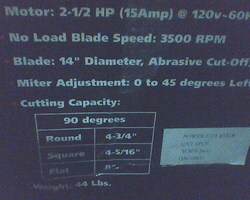5.Cutting Capacity(90degrees) Round 4-3/4"