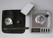 ผม เสนอขายเครื่องชั่งน้ำหนักดิจิตอลขนาดพกพา แท่นชั่งน้ำหนักขนาดเส้นผ่าศูนย์กลา 3 ซม. พร้อมถาดสามารถชั่งได้สูงสุด 20 กรัม แสดงผลน้ำหนักทศนิยม 3 ตำแหน่ง คือ 0.001 กรัม สูงสุดชั่งได้ถึง 20 กรัม หรือ 100 กะรัต หน้าจอแบบสัมผัส มีปุ่มกด TARE เพื่อปรับค่าน้ำหนักให้เท่ากับศูนย์ก่อนทำการชั่งทุกครั้ง มีหน่วยน้ำหนักด้วยกัน 6 หน่วยคือ กรัม ออนส์ กระรัด, oz, ozt, gn และ dwt มีปุ่มสำหรับเปิดปิดไฟหน้าจอ LED เหมาะสำหรับชั่งน้ำหนักทองคำ, ทองคำขาว, เงิน, เพชร, พลอย, หยก, ฯลฯ จุดเด่นพกพาสะดวก ใช้ถ่าน AAA 4 ก้อน เน้นต้อง alkaline เท่านั้นครับ ใช้ได้แม้อยู่ในที่มืด แท่นวางน้ำหนักเป็นสเตนเลสอย่างดี น้ำหนักเบา ชั่งได้น้ำหนักมาตรฐาน ใช้ได้กับทุกท่านที่ทำอาชีพเกี่ยวกับทองคำ จิวรี่ ร้านเพชร พลอย โรงรับจำนำ ฯ หรือนักเรียน นักศึกษาใช้ในการทดลองต่าง ๆ และผู้ที่สนใจทั่วไป