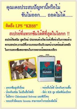 LPS KB-88สเปรย์กัดสนิม,คลายน๊อต,คลายเกลียว,ให้การแทรกซึมสูงหล่อลื่นได้ดีป้องกันความชื้นป้องกันสนิมไม่เป็นสื่อไฟฟ้า ไม่มีสารโซเวนท์ และซิลิโคนมีค่าKBสูงชนิดฟิล์มเปียกไม่แห้งสอบถามรายละเอียดเพิ่มเติ่มได้ค่ะ