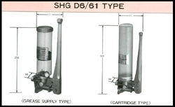 SHG เป็นปั๊มอัดจารบีด้วยมือ ออกแบบให้ใช้กับ control unit ตัวปั๊มแบ่งออก เป็น 2 รุ่นตามปริมาตรของจารบีที่ฉีดออกมา คือ 0.6 cc( SHGD6/61) และ1.0 cc (SHGD12/12-1) การทำงานของปั๊มทำได้โดยการดึงคันโยก ซึ่งจะทำให้จารบีฉีดเข้าสู่ระบบจำนวนหนึ่ง อุปกรณ์นี้ ออกแบบให้รองรับกับงานหนักได้