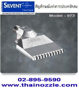 หัวฉีดลม รุ่น 973 เป็นหัวฉีดลมหน้ากว้าง หัวฉีดกระจายครอบคลุมพื้นที่ ใช้สำหรับ เป่าแห้ง กับขวดแก้ว ขวดพลาสติก กระป๋อง กล่อง และภาชนะบรรจุทุกชนิด ภายใต้การควบคุมมาตรฐานเรื่องเสียง จาก OSHA ที่นานาประเทศยอมรับ เพราะ “Silvent” สร้างผลิตภัณฑ์ที่ใช้สำหรับงานเป่าลม เท่านั้น จึงมีความเชี่ยวชาญสูงสุด ได้รับการยอมรับและช่วยประหยัดพลังงานได้มากที่สุดด้วย