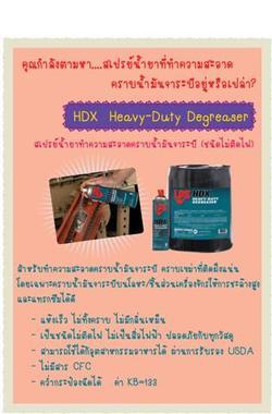 HDX เป็นน้ำยาล้างคราบน้ำมันและจาระบี สูตร Solvent ไม่ติดไฟ ทำความสะอาดรวดเร็ว ใช้สำหรับ