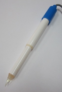 The " Spear Tip pH electrode " is perfect for those pH measurements in applications where sample piercing is required. Meat, sausage and cheese are ideal applications. The electrode features a very durable glass measuring spear packaged in a rugged virtually unbreakable epoxy body.