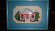 ขายภาพปักครอสติชรูปบ้านพร้อมกรอบสีฟ้าขนาด 27*19.5 ซม. ราคา 490 บาท