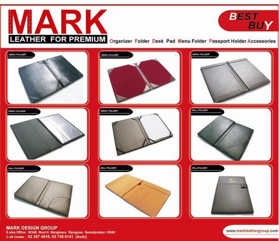 (( Mark Design Group )) รับผลิตแฟ้มเมนูอาหาร, แฟ้มเก็บเงิน, แฟ้มวางบิล , แฟ้มเซ็นบัตรเครดิต , แผ่นป้ายรับบัตรเครดิต, ทุกชนิด หรือทำตามแบบที่ลูกค้าต้องการ รับหุ้มทั้ง ผ้า, ผ้าไหมทุกชนิด, หนังเทียม , หนังแท้, หนัง PU