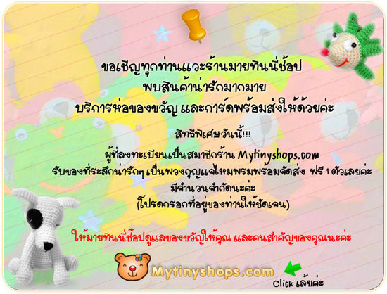 สมัครเป็นสมาชิก ร้าน Mytinyshops.com วันนี้ รับของที่ระลึกน่ารักๆ ค่ะ