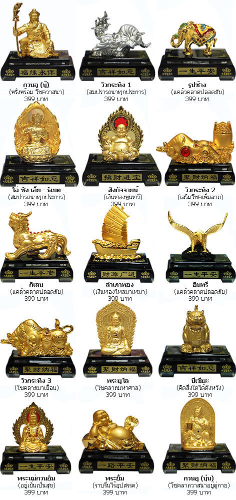 คริสตัลน้ำหอม - กวนอู บุ๋นบู๊, วัวกระทิง, ช้าง, ไฉ่ ชิง เอี้ย ธิเบต, สังกัจจายน์, กิเลน, สำเภาทอง, อินทรี, พระยูไล, ปี่เชียะ, พระแม่กวนอิม, พระยิ้ม