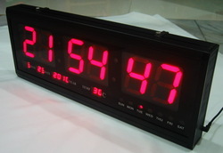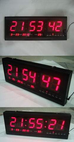 นาฬิกา Led ติดผนังขนาดใหญ่ เหมาะสำหรับสำนักงาน โรงงาน บ้าน ออฟฟิศ ขนาดโดยประมาณ กว้าง 48 สูง 19 หนา 5 ซม. ตัวแสดงเวลาสูง 8 ซมหนา 1 ซม บอกเวลาเป็น ชั่วโมง นาทีและวินาที พร้อมบอก วันที่ เดือน ปี สัปดาห์ และอุณหภูมิ แสดงผลแบบดิจิตอล Led ใช้ไฟบ้าน 220 V พร้อมถ่านแบ็คอัพเวลาไฟดับ มีระบบปรับแสงอัตโนมัติเมื่อเวลากลางคืนไฟจะหรี่ลงโดยอัตโนมัติเพื่อป้องกันแสงรบกวนสายตา (22.oo-7.00 น.)