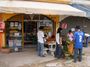 ด้านหน้าบ้าน มีตลาดนัด ผู้คนมากมาย ค้าขายได้ทุกอย่าง
