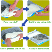 ถุงสูญญากาศ เป็นถุงพลาสติด PE ลักษณะเมื่อเอาลมออกแล้วจะเป็นถุงแบน ซึ่งเหมาะกับการเก็บเสื้อผ้า หมอน, ผ้าห่ม, ผ้านวม, เสื้อกันหนาว, ตุ๊กตา, ผ้าไหม, ผ้าเช็ดตัว, เสื้อผ้าเด็ก, และอุปกรณ์อื่น ๆ ยกเว้น อาหาร, ของมีคม และของเปียกชื้น เพียงนำ เสื้อผ้า ผ้าห่ม หรืออุปกรณ์ที่ต้องการเก็บใส่ในถุง ปิดถุงให้สนิท แล้วนำเครื่องดูดฝุ่นมาดูดอากาศออก หรือเอามือบีบไล่อากาศออก จะเกิดเป็นสูญญากาศ ทำให้ซิลด์เสื้อผ้า ผ้าห่ม หรืออุปกรณ์อื่น ให้หดตัวและมีขนาดแบบลง ทำให้เก็บของที่มีขนาดใหญ่ได้แบบไม่เปลืองเนื้อท ี่ ประหยัดเนื้อที่ประมาณ 1 ใน 3 หรือ 75% ของพื้นที่เดิม