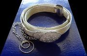 (รูปที่5 แถวล่างกลาง) รหัสสินค้า Belt03 เข็มขัดเงินแท้92.5% งานฝีมือ ลายถัก น้ำหนัก 336 กรัม ความยาว 27" - 33" (เลื่อนสั้นยาวได้) กว้าง 2.4 ซ.ม. ชิ้นนี้ราคากรัมละ 50 บ. เท่านั้น