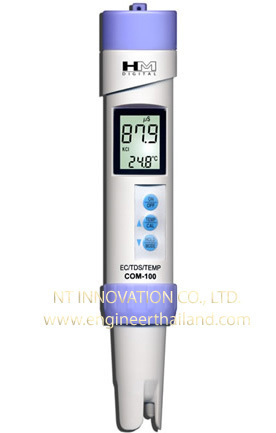 เครื่องวัดค่าการนำไฟฟ้าและสารแขวนลอยในน้ำ, ปากกาวัดค่าการนำไฟฟ้า และสารแขวนลอยในน้ำ (HM Digital TDS/EC/T Meter/Tester, Conductivity) (Model: COM-100) ราคาพิเศษ 3,800 บาท
