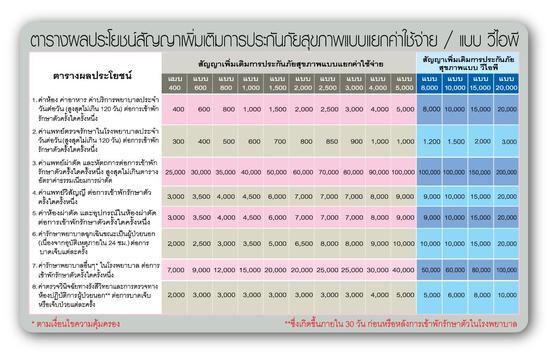 ผลประโยชน์ของสัญญาเพิ่มเติมการประกันภัยสุขภาพ