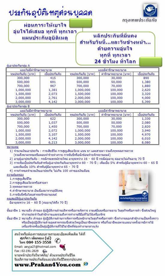 กรุงเทพประกันภัย ประกันอุบัติเหตุส่วนบุคคล ผ่อนภาระให้เบาใจ อุ่นใจได้เสมอ ทุกที่ ทุกเวลา /กับทุนประกันถึง 3ล้านบาท พร้อมค่ารักษาพยาบาลที่เลือกได้