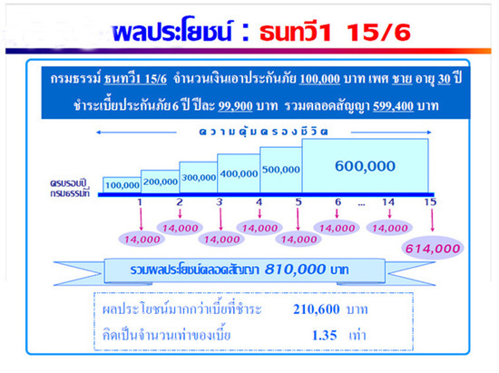 ชำระเบี้ยระยะสั้นเพียง 6 ปี เงินคืนทุกปี ปีละ 14% ลดหย่อนภาษี ตลอดสัญญารับ 810%