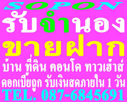 เงินกู้ เงินด่วน รับจำนอง ขายฝาก ไถ่ถอน บ้าน ที่ดิน คอนโดมิเนียม ทาวเฮ้าส์ อสังหาริมทรัพย์ทุกชนิด นายทุนทำเอง ดอกเบี้ยถูก รับเงินสดภายใน 1 วัน รับปรึกษาฟรี