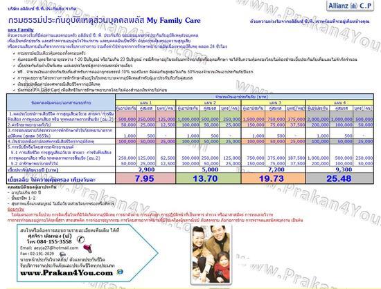 อลิอันซ์ ซี.พี. ประกันอุบัติเหตุสำหรับครอบครัว เริ่ม8บ/วัน คุ้มครอง5แสน ค่าพยาบาล5หมื่น คุ้มครองฟรีบุตร ชดเชยรายวัน ค่าปลงศพ เพิ่มทุนประกันภัยให้ทุกปี 3