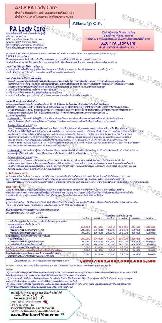AZCP-PA Lady Care ประกันบัติเหตุสำหรับผู้หญิงโดยเฉพาะ คุ้มครองอุบัติเหตุ การถูกทำร้าย ทันตกรรม ค่ารักษาพยาบาล PA Platinum Card ชำระรักษาพยาบาลแทนเงินสดได้ทันที