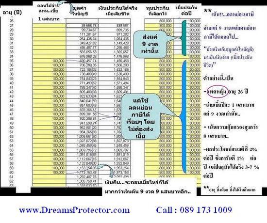 (ทั้งนี้...เงินคืนจะเป็นไปตามอายุที่เริ่มทำ และเพศ ชาย-หญิง ยิ่งทำตอนอายุน้อยๆ ยิ่งดี และเพศหญิงได้เปรียบกว่า)