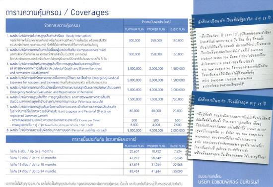 ให้ความคุ้มครองแก่ท่านหากท่านประสบอุบัติเหตุในระหว่างที่ศึกษาอยู่ที่ต่างประเทศ และเป็นเหตุให้ท่านสูญเสียชีวิตหรืออวัยวะภายใน 180 วัน